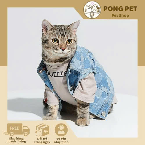 Thiết kế phong cách thời trang Hàn Quốc: Áo Thun + Áo Khoác Jean Thời Trang Cho Mèo