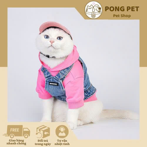 Bộ quần áo thời trang cho mèo gồm hoodie hồng phối yếm jean siêu dễ thương, phong cách cá tính. Chất vải cao cấp, êm ái, không gây kích ứng. Giao hàng nhanh, đổi trả dễ dàng.
